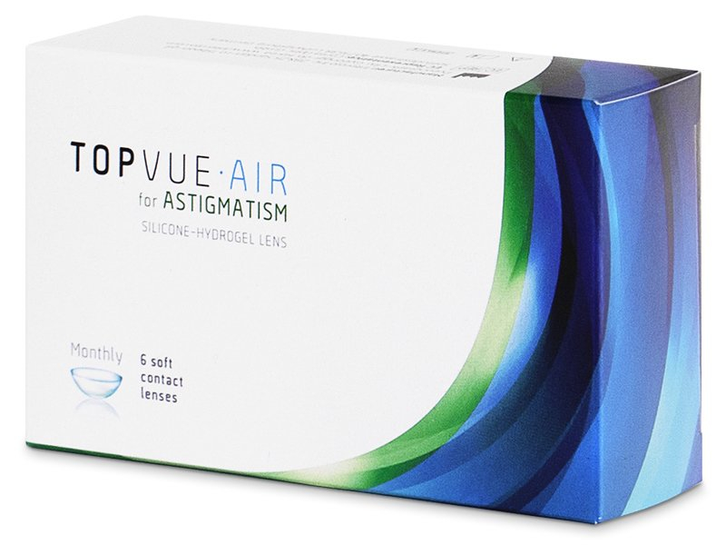 TopVue Air for Astigmatism are innovative toric contact lenses made from an advanced silicone-hydrogel material. TopVue Air for Astigmatism are characterised by their high oxygen permeability and water content. Both of these features help ensure comfort and clarity of vision. The progressive design of TopVueAir for Astigmatism ensures stable positioning of the lenses on the eyes for perfect vision throughout the day. This package contains six lenses.